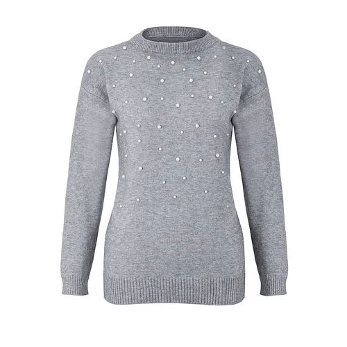 Imitation Pearl Long Sleeve Pullover
